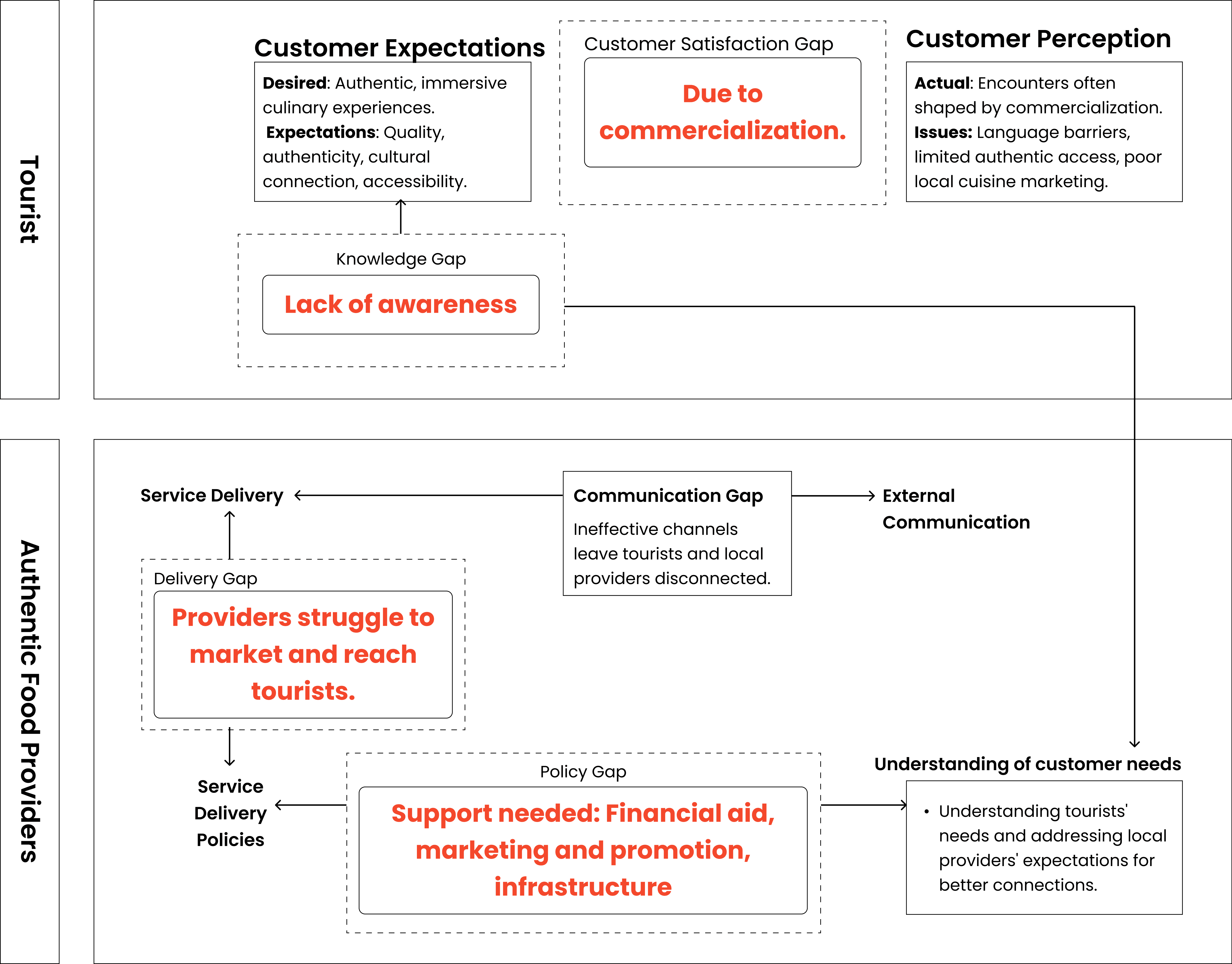 The Customer Gap Model became a pivotal tool in identifying these disconnects, laying the groundwork for future design interventions to elevate culinary tourism experiences.